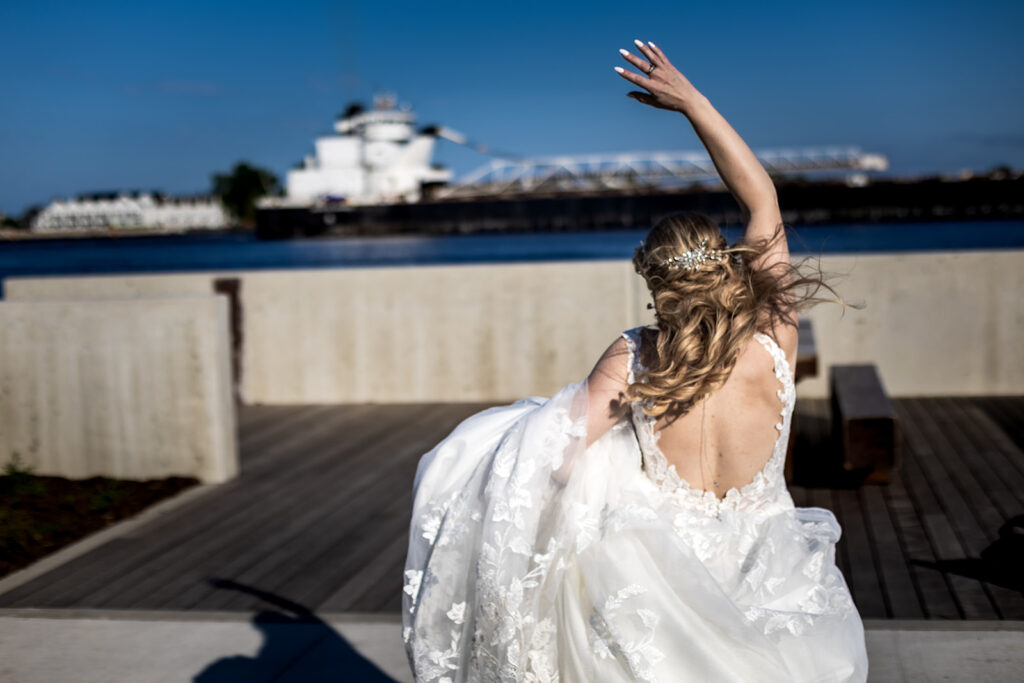 For couples who dream of sandy shores, Park Point Beach feels like a hidden escape right within the city. This stretch of sand and shoreline gives a sense of calm mixed with adventure. The boardwalk and dunes are perfect for pre-ceremony portraits, while the waterline brings a relaxed, natural energy to every image. I love guiding couples here during golden hour when the light softens and reflects off the waves, turning the beach into a glowing scene that feels magical in real life and in photographs.