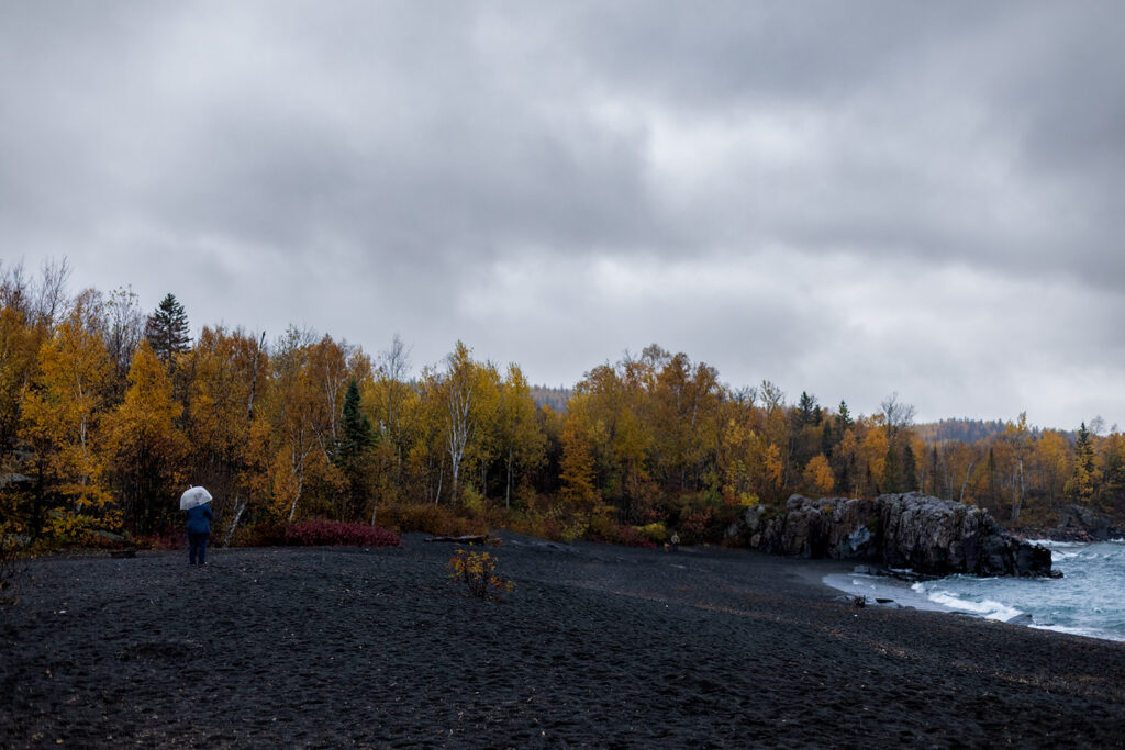 In Silver Bay, Black Sand Beach stands out as one of the most visually striking places for Minnesota elopement photos. The mix of dark sand, blue-green water, and colorful rocks creates an otherworldly scene that feels straight out of a film. This quiet cove offers both rugged cliffs and peaceful shoreline, ideal for couples wanting something truly unique.