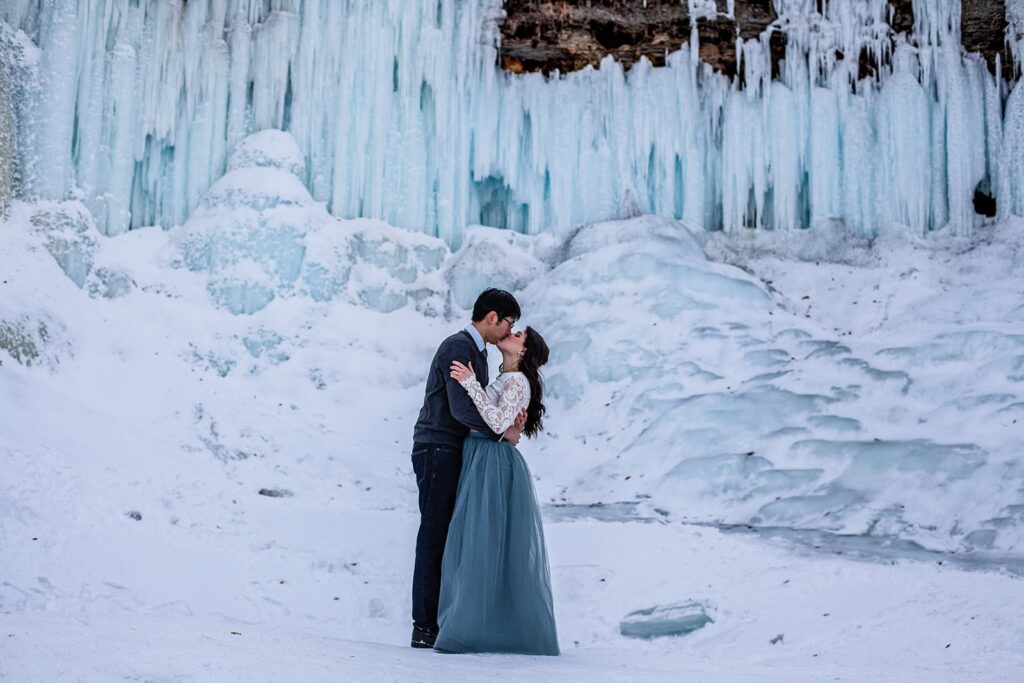 Minnehaha Falls brings the beauty of nature right into the city, offering an unforgettable backdrop for couples who want organic, textured images. The 53-foot waterfall and limestone cliffs create an atmosphere of calm and romance, especially when paired with surrounding greenery. Every season transforms the park, making it an ideal choice for couples who want wedding photos in St. Paul and Minneapolis that reflect nature’s energy and beauty.